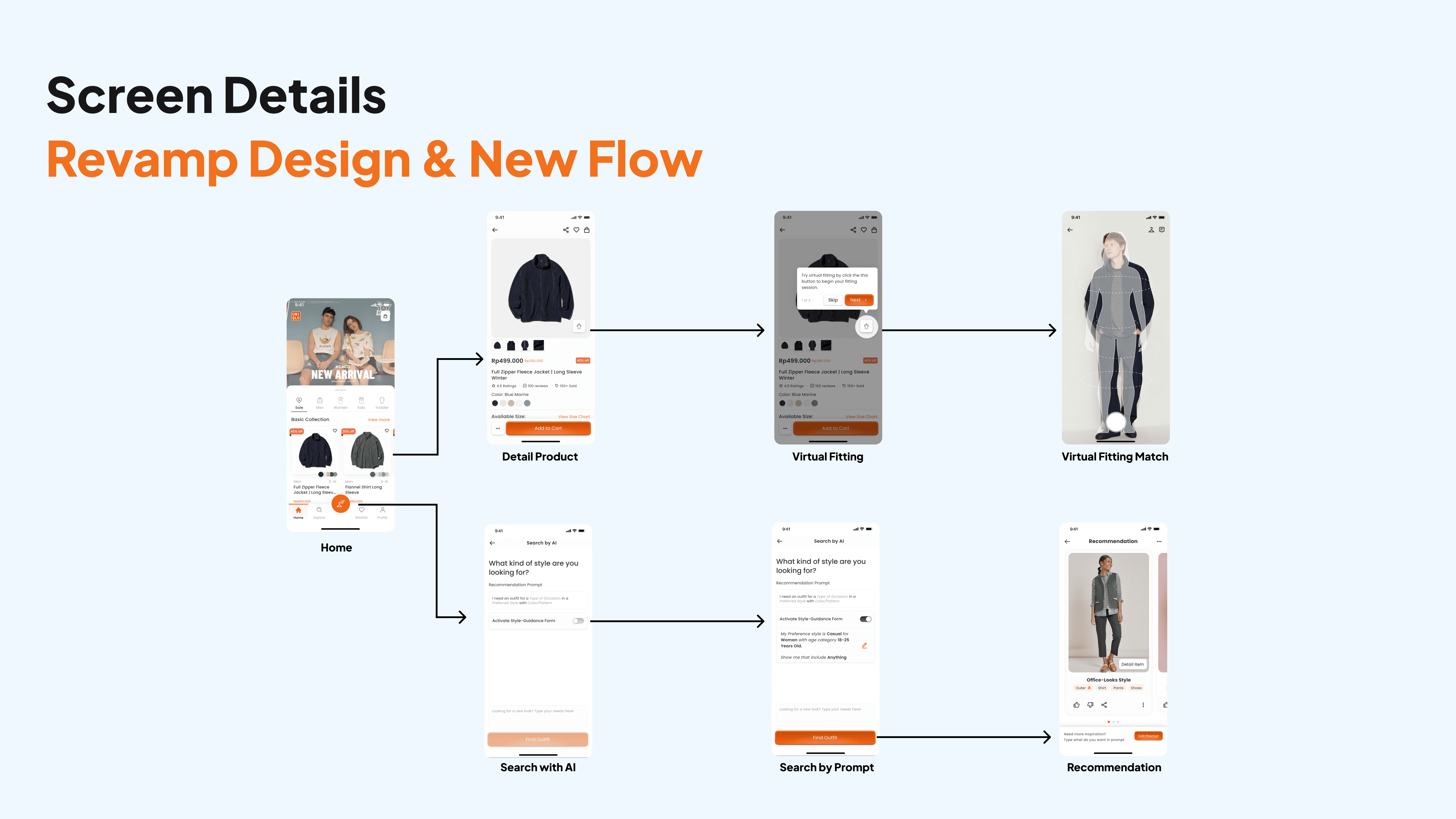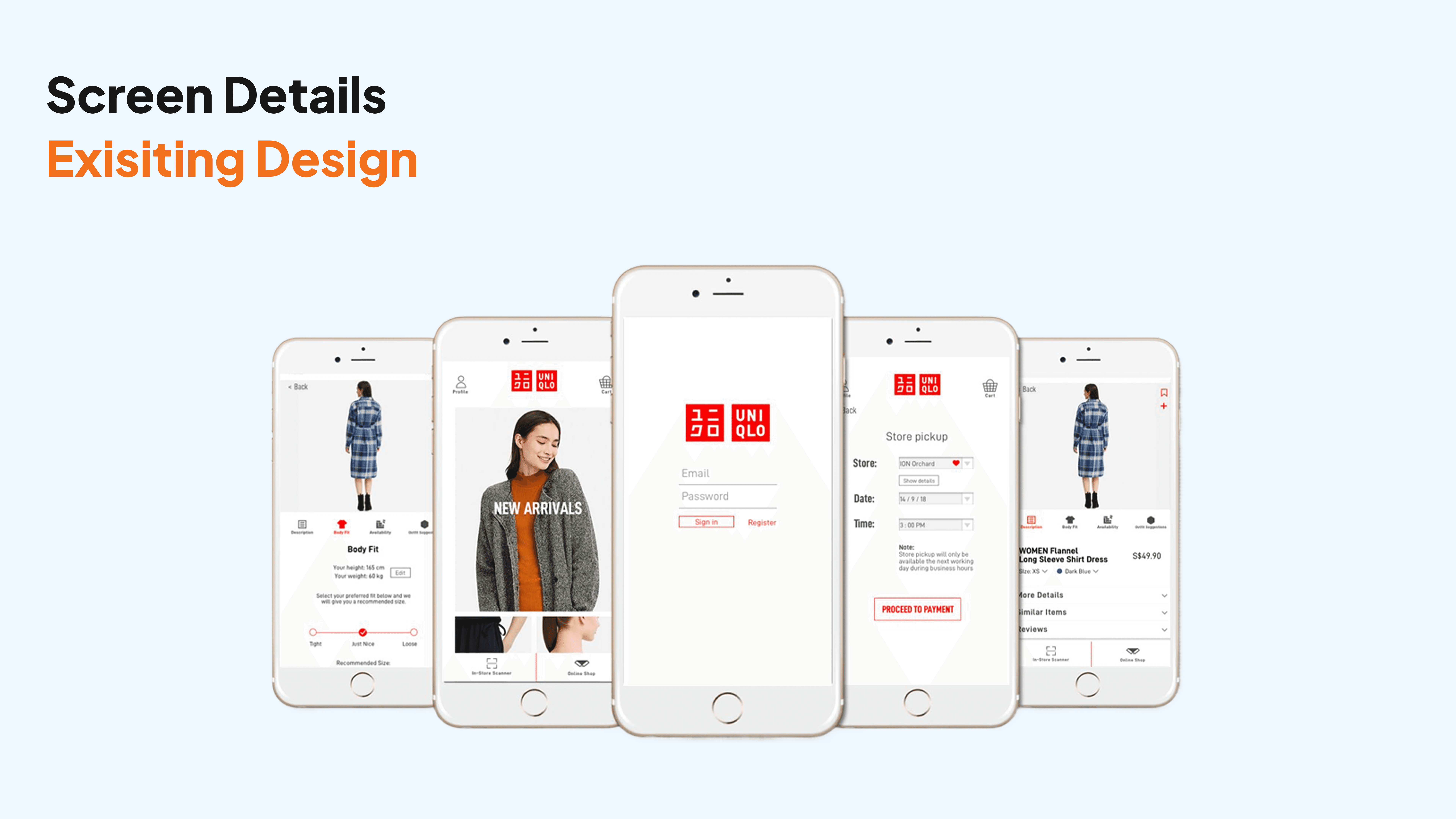 The redesigned Uniqlo mobile app aimed to create a smoother and more user-friendly experience by balancing minimalist aesthetics with soft skeuomorphic elements. This combination preserved brand identity while enhancing usability. Key features—such as AI-driven style suggestions and a virtual fitting room—were tailored to replicate the tactile appeal of in-store shopping through a digital interface.