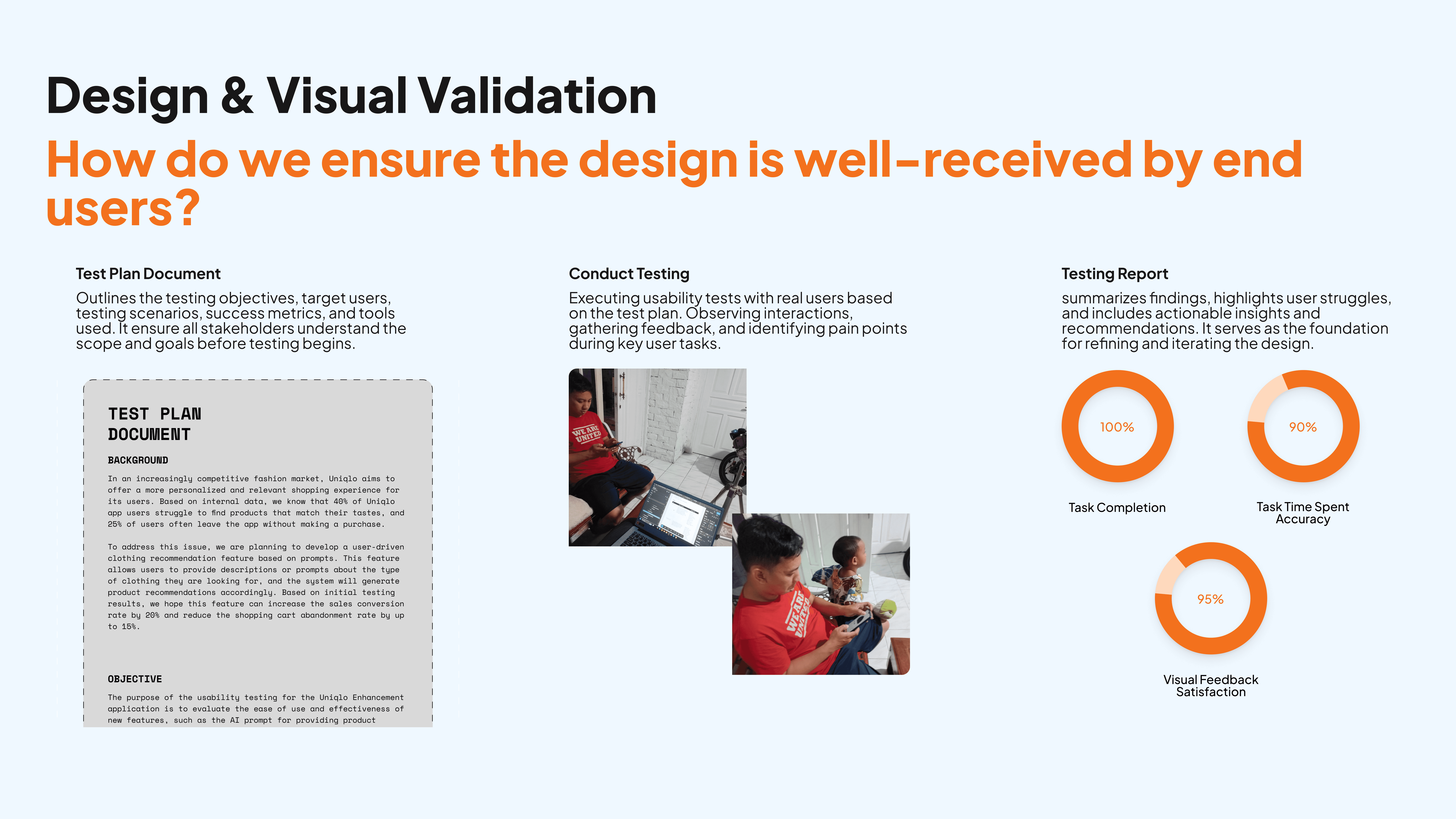 Usability testing confirmed the success of these updates: all users completed their tasks, 90% did so within the expected time, and 95% expressed satisfaction with the visual design. These outcomes point to stronger user engagement, improved decision confidence, and better alignment with business objectives like boosting conversions and lowering cart abandonment rates.